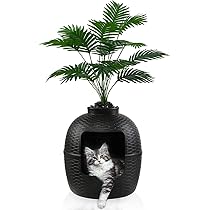 Keygarzone Hidden Litter Box With Plant Cat Litter Box Furniture With Rattan Pattern For Large Cat Carbon Filter Pp Material Waterproof Easy Assemble Clean Brown Pet Supplies Amazon Com